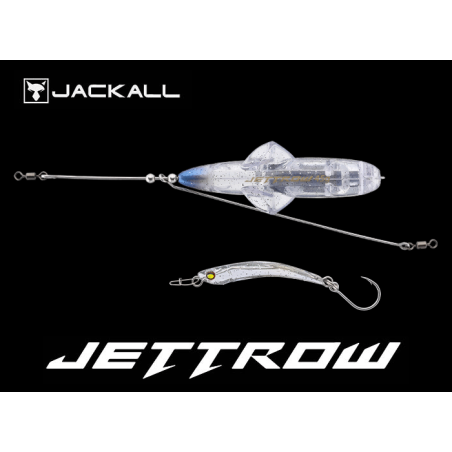 Leurre de lancer longue distance avec montage traîné prêt à pêcher. Jettrow 45 g + leurre Shirasu pour une nage ultra réaliste. Idéal pour les pêches côtières du bord.