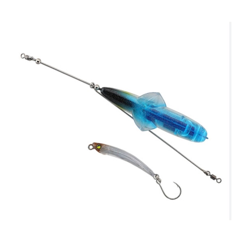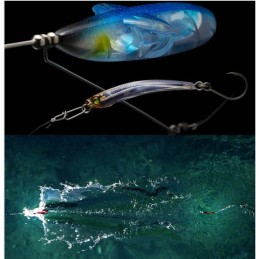 Son montage repose sur un système traîné unique : la tête JETTROW propulse le leurre principal avec une action vibrante, roulante et désaxée très efficace. L’Appeal Set est spécialement conçu pour émettre un maximum de reflets et de signaux visuels en nage linéaire ou saccadée.